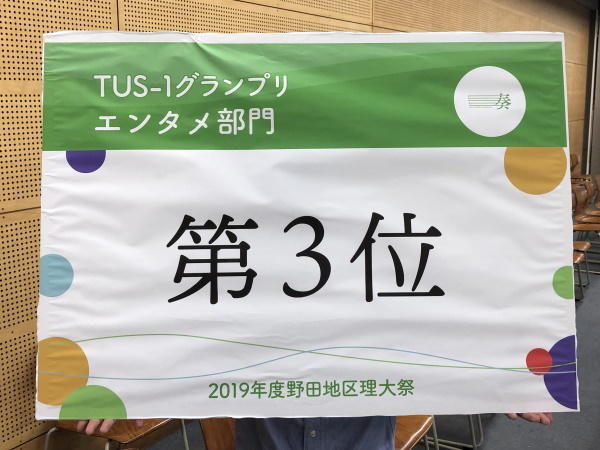 また、2019年度TUS-1グランプリでエンタメ部門第3位を受賞しました!