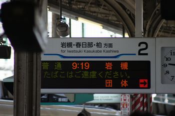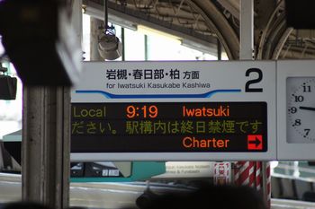 大宮駅の表示。今回は東武トラベル主催の団体貸切列車という扱いである。