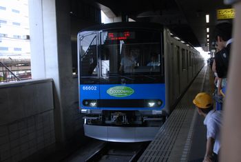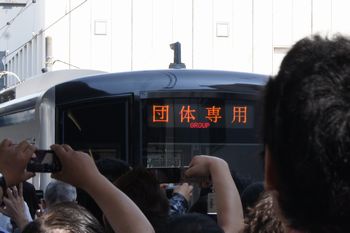 60000系第一編成入線。駅表示が「団体/Charter」なのに対し、60000系電車は「団体専用/GROUP」の表示である。