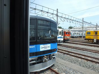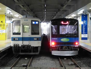 七光台支所に突入。展示車両の横、先に着いていた61601号編成の隣に到着。