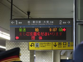 柏駅3番線入線。ここで15分程度停車。停車中は「試運転」表示であった。ホームには撮影者が溢れていた。