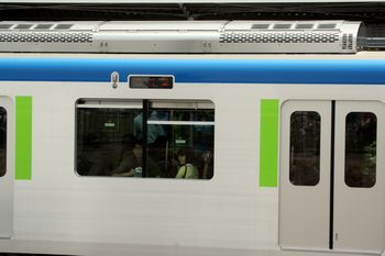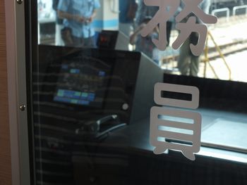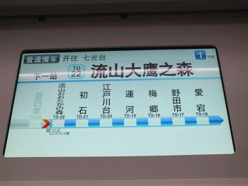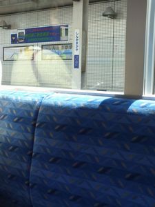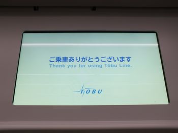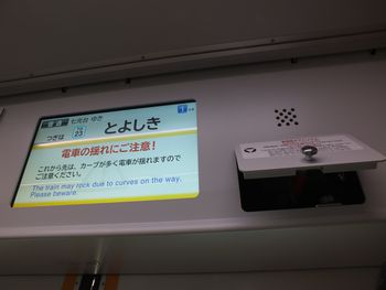 広報担当の方を出すために一番前のドアを非常用ドアハンドルを開放。また停車時間を利用して車内案内の実演がなされた。60000系は各ドア上にある4ヶ国語(日英中韓)対応のディスプレイと自動放送での案内が可能である。