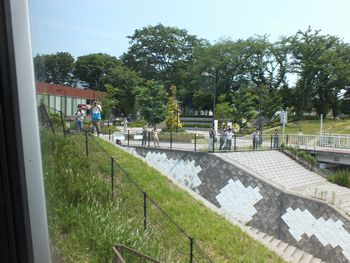 会員に見送られ、会員を乗せた電車が支所内に向かう。