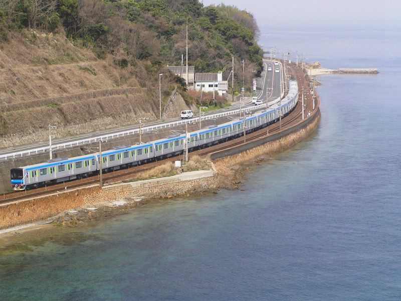 大畠~神代間の瀬戸内海沿岸をいく。東武線に入ったら海岸線を走ることはない。