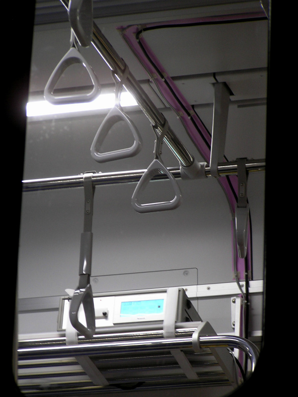 61602号車に機器が搭載され、コードが運転台にのびていた。