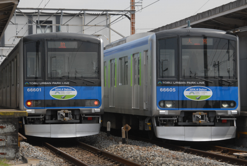 4月のトップ画像は、4月から野田線に導入された愛称名「東武アーバンパークライン」のロゴが張り付けられた60000系の並びです。