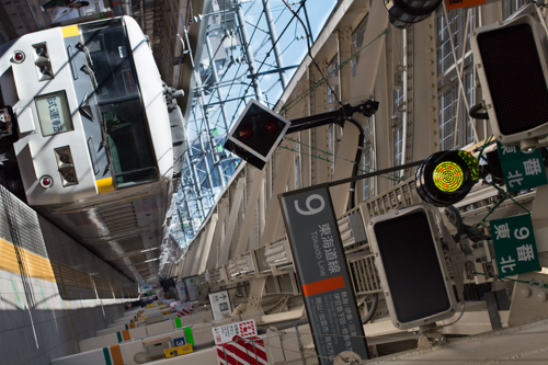 今月から昼間の試運転も始まり、写真のような東京駅から上野方面へ発車する光景なども見ることができるようになりました。