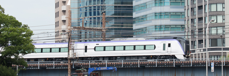 9月のトップ画像は、JR東日本の新型特急車両E353系です。 E353系は中央線の特急「スーパーあずさ」などで使用されているE351系の置き換えを目的に製作された車両で、 1本目となる車両が今年7月に登場しました。 現在、中央線などで量産に向けた試験走行が行われています。 営業運転の開始時期は今のところ未定のようなので、試運転を見かけることが出来ればラッキーかもしれません。 |