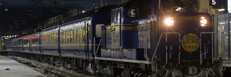 1月のトップ画像は急行「はまなす」です。 急行「はまなす」は青森駅と札幌駅を結ぶ夜行急行列車で、青函トンネルの開通とともに登場した列車です。 この列車はJR各社が運行する最後の定期急行列車であり、客車を用いた最後の定期列車でもあります。 夜行列車が次々と廃止されてゆくなか運行を続けてきた急行「はまなす」ですが、今年3月の北海道新幹線開業に伴い廃止されることになっています。 |